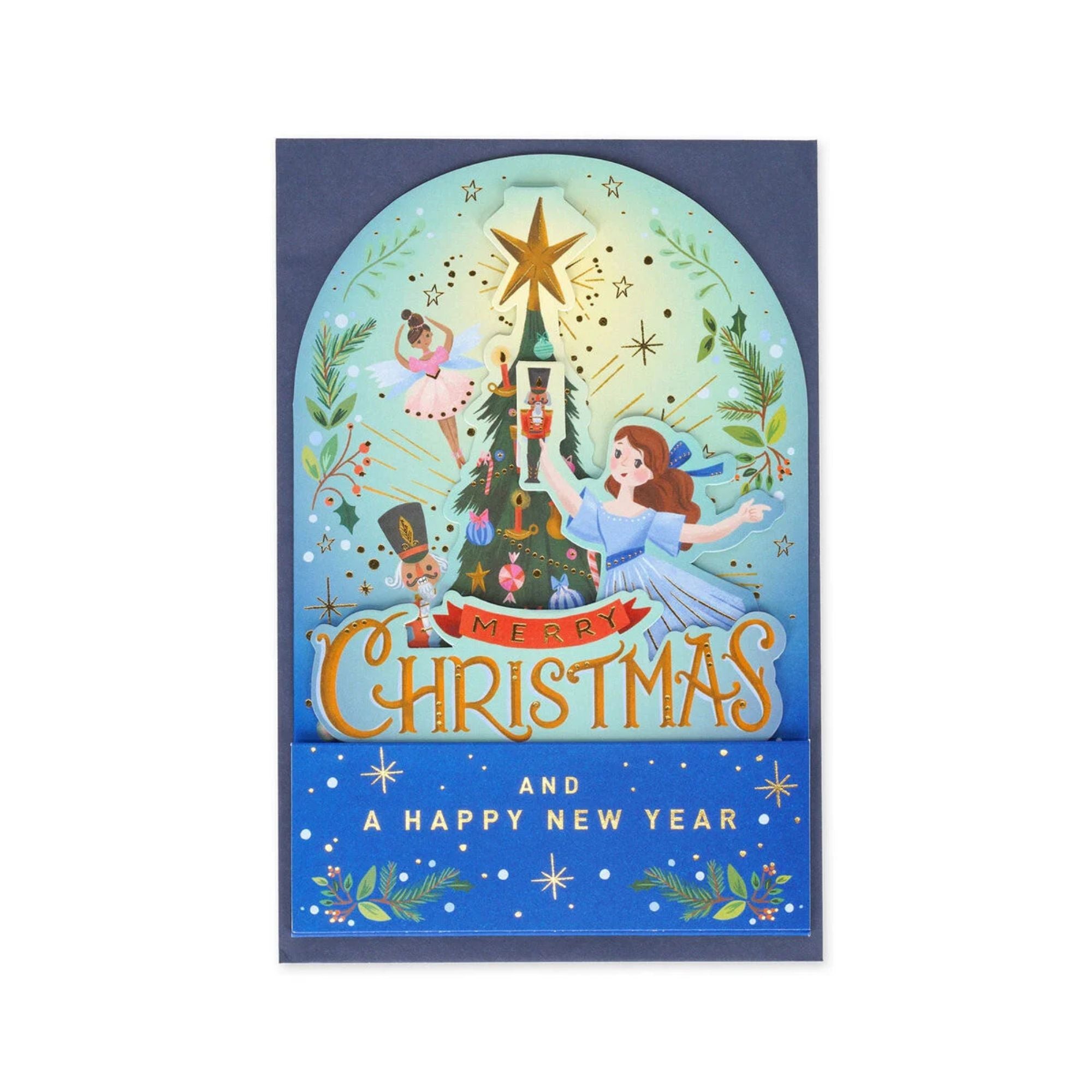 Edles 3D-Pop-up-Motiv mit festlich geschmücktem Weihnachtsbaum