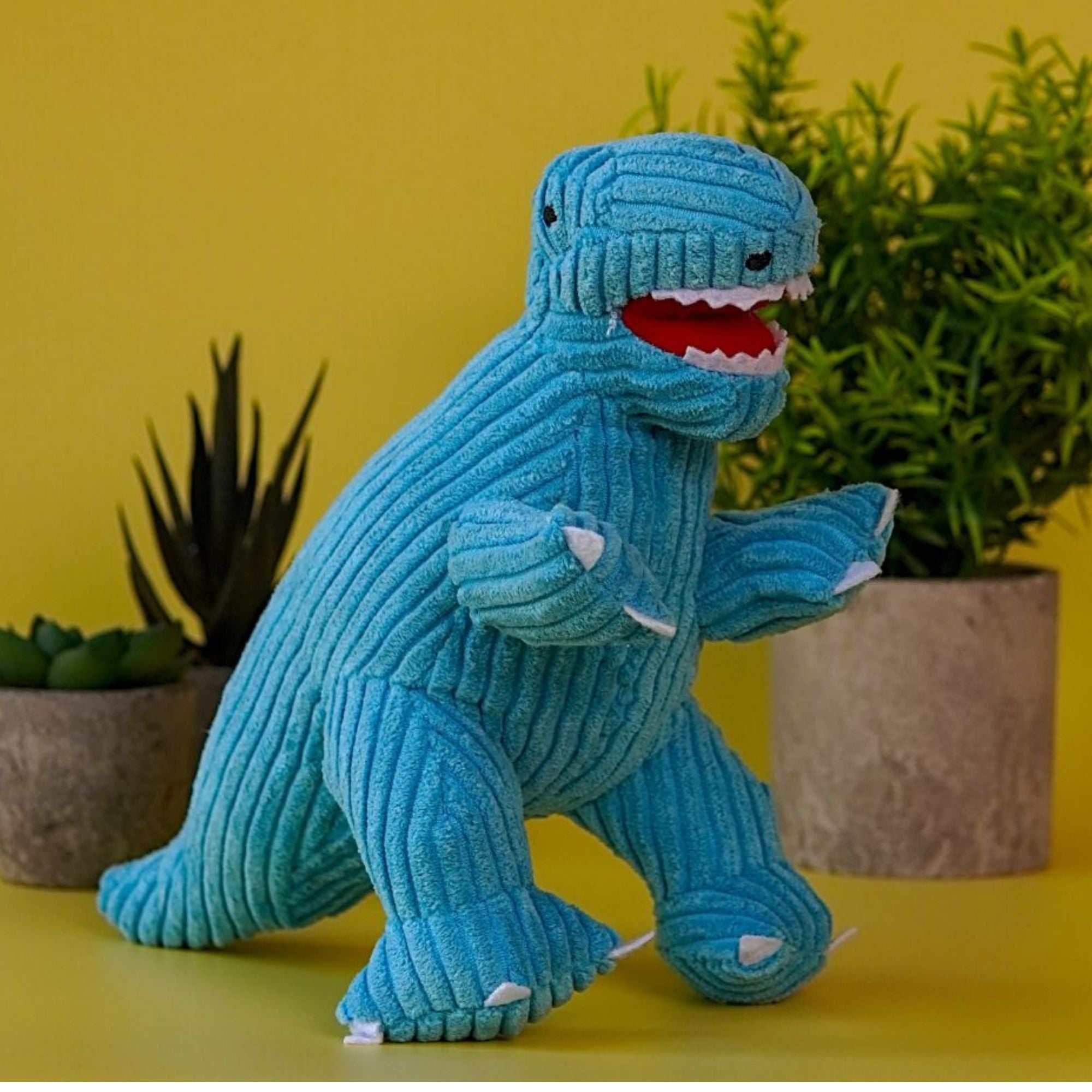 Ein kuscheliger T-Rex aus Kordstoff – nachhaltig, detailreich und ein Lieblingsstück für Dino-Fans jeden Alters.