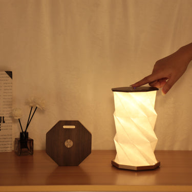 Gefertigt aus hochwertigem Walnuss Holz, überzeugt die Twist Hexagon Light durch Langlebigkeit und moderne Ästhetik. Ein sanfter Druck auf den oberen Knopf genügt, um das Licht zu aktivieren – intuitiv und elegant zugleich.