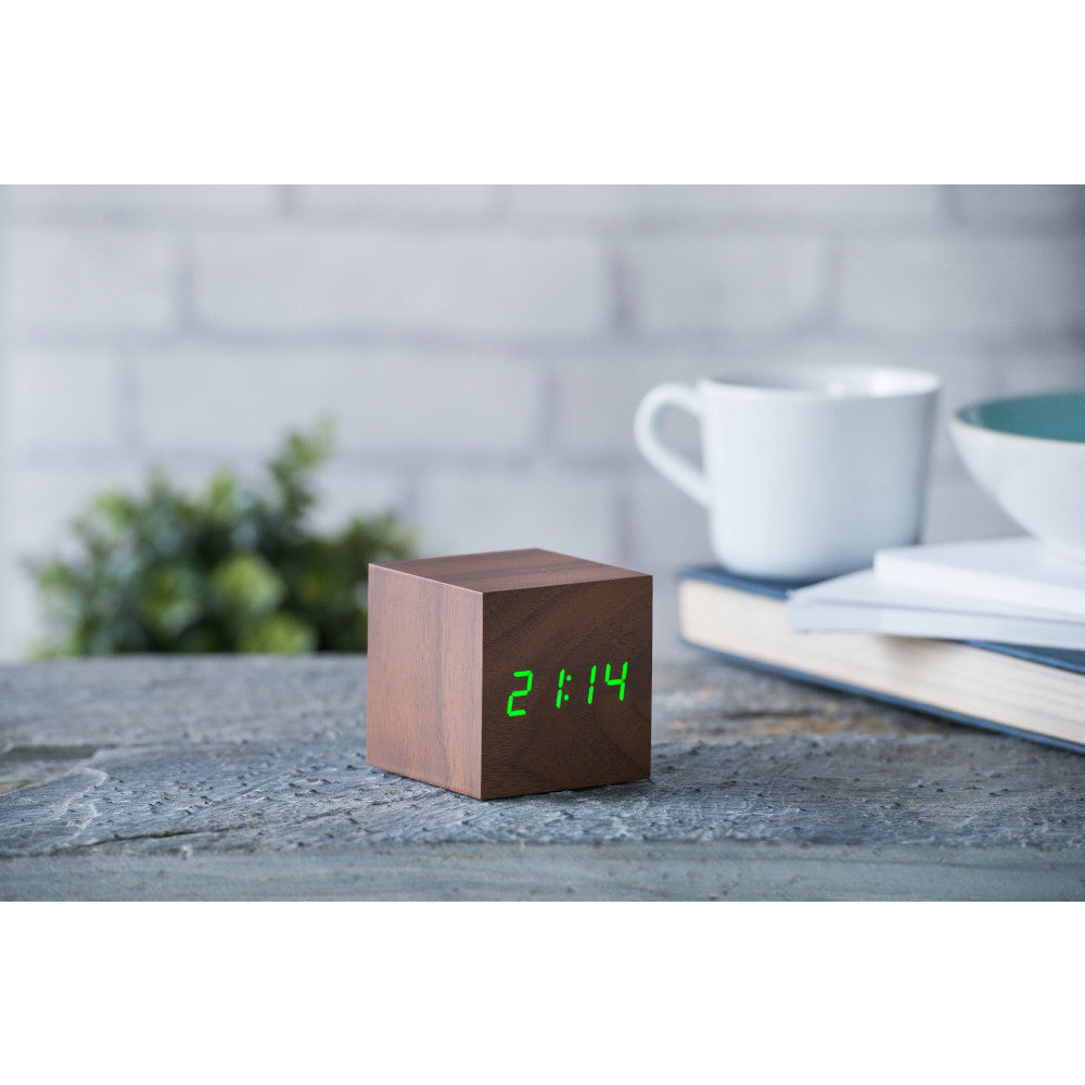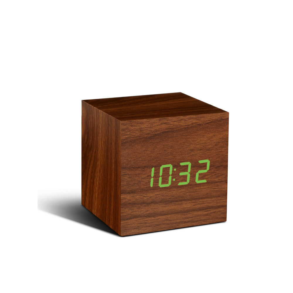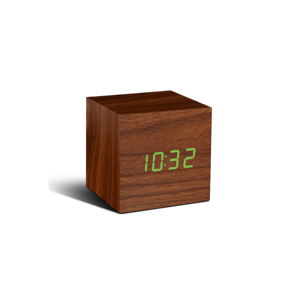 Wecker "Cube Click Clock Walnuss / LED green" • Gingko