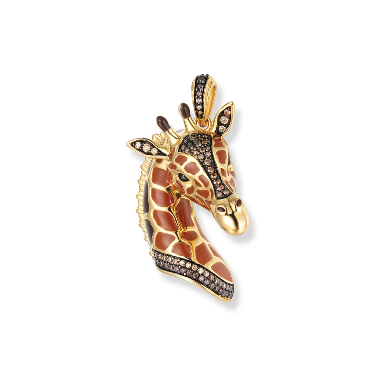 Der Zuri Giraffen Anhänger aus 925 Sterling Silber ist eine Hommage an die anmutigste Königin der Savanne. Dieses außergewöhnliche Schmuckstück vereint natürliche Eleganz mit luxuriöser Ausstrahlung: 18K Vergoldung sorgt für warmen, edlen Glanz, während die bräunliche Emaille das charakteristische Fellmuster der Giraffe kunstvoll nachzeichnet.